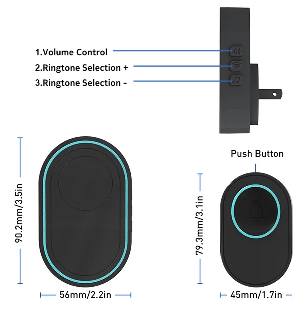 زنگ بیسیم تویا با قابلیت اتصال به پریز برق و بدون نیاز به تغییرات سیمکشی منزل یا مغازه و ویلای شما به شما این اجازه را میدهد تا به راحتی بتوانید از آن در همه مکان ها و بدون محدودیت استفاده کتید و از مزایای قراوان آن استفاده کنید، قسمت شستی زنگ در فضای باز تا 150 متر را پوشش میدهد پس نگران فاصله بین شستی و زنگ نباشید، همچنین شستی آن ضد آب است (IP65) پس به راحتی میتوانید در فضای باز از آن استفاده کنید، قسمت اصلی زنگ را بدون نیاز به تغییرات روی یک پریز تا فاصله 150 متری از شستی قرار داده و از آن استفاده کنید، زنگ دارای لایت آبی زیبا و 39 مدل زنگ میباشد که هر نوع سلیقه ای را اغنا میکند پس نگران نوع صدای زنگ خود نباشید، همچنین زنگ دارای 5 نوع سطح صدا میباشد که میتوانید به راحتی میزان صدا را کنترل کنید و حتی روی حالت بیصدا قرار دهید( در حالت بیصدا فقط چراغ زنگ روشن وخاموش میشود)